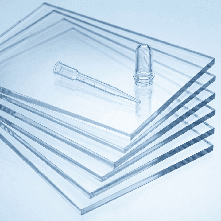 Rigid, high-clarity sheets for food-grade packaging, medical components, and chemical-resistant displays.